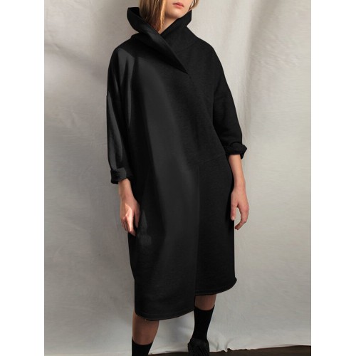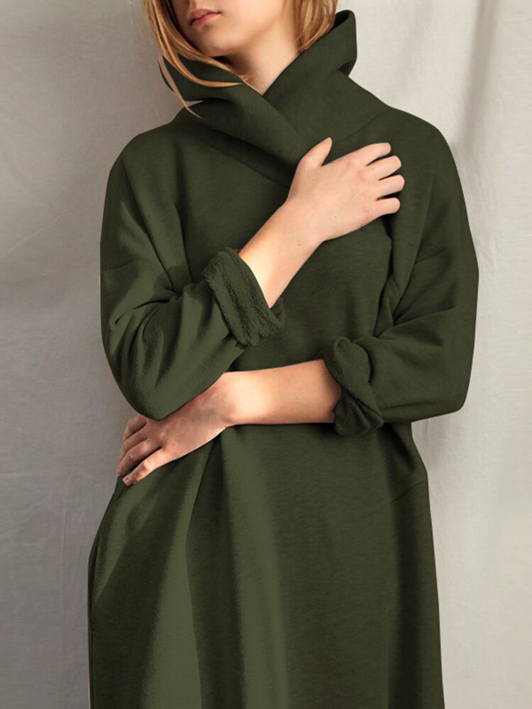 Midi Dresses - Women Design High Neck Solid Color Knee Length Casual Dresses